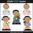 Esta colección incluye un niño y una niña sosteniendo sonajeros, un niño jugando con un avión de juguete y dos niñas sosteniendo bonitas flores. Este conjunto contiene 5 gráficos.
