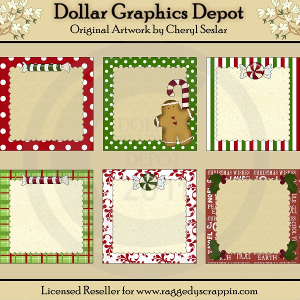 Esta colección incluye seis entrantes de 6" x 6", con caramelos de menta, hojas de bayas de acebo, un hombre de jengibre, un bastón de caramelo y bonitos bordes festoneados con lunares, rayas, cuadros, volutas y patrones artísticos de palabras navideñas. Los colores incluyen: rojo, blanco, verde, marrón, tostado y crema. ¡Estos iniciadores son tan versátiles para tantos proyectos! Se pueden usar para tarjetas de felicitación, páginas de álbumes de recortes de 6" x 6", frentes de latas de pintura de un galón, bloques de vidrio, cuadros de texto, imanes, azulejos, posavasos, etiquetas de regalo, adornos para bolsos y mucho más. Este conjunto contiene 6 imprimibles.