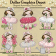 Esta colección incluye seis dulces niñas, que visten bonitos vestidos, pantalones capri y sombreros florales a juego, con estampados de rayas, cuadros, corazones, lunares y flores, en rosa, blanco, amarillo, verde, morado, naranja y azul. muchas hermosas flores rosadas y regaderas de jardín. Este conjunto contiene 6 gráficos.