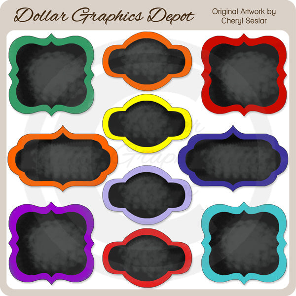 Esta colección incluye diez pizarras enmarcadas de colores en verde, naranja, rojo, amarillo, azul, morado, lavanda y aguamarina. Este conjunto contiene 10 gráficos.