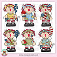 This one-of-a-kind collection is only available at Digital Craft Supplies. This clip art set includes six country Americana rag dolls with patchwork dresses and matching headbands, Americana bunting banners, patriotic balloons, a red, white and blue ice cream cone, a firecracker, a 4th of July heart, an American flag, a slice of watermelon, and a rocket. This set contains 6 graphics.