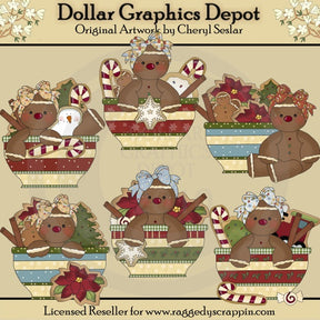 A continuación se muestran algunos ejemplos de lo que puede crear utilizando estos gráficos "Whimsical Gingers - Christmas Bowls":