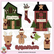 Esta colección incluye una casa verde con bastones de caramelo, un corazón y un letrero de "Elves Quarters", una casa roja con una estrella dorada, una corona navideña, dos árboles de Navidad decorados y un letrero de "Taller de Papá Noel", un calcetín navideño con un bastón de caramelo y ramas de pino, dos renos, un bastón de caramelo, un simpático hombrecito de jengibre y un gráfico con palabras "Recuerdos de Navidad". Este conjunto contiene 8 gráficos.