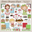 Esta ENORME colección incluye una dama con una galleta de jengibre, una dama con una galleta navideña, una dama con una taza de pan de jengibre, una niña con una taza de Papá Noel, un niño con una taza de pan de jengibre, dos tazas de café con leche de jengibre, una taza de muñeco de nieve, un plato de galletas navideñas, un caramelo de menta, un bastón de caramelo, una hoja de acebo, dos galletas navideñas escarchadas, una galleta de muñeco de nieve, un tarro de galletas de Papá Noel, una tetera de Papá Noel, una taza de té de Papá Noel, una bolsa de galletas de jengibre, un pan de jengibre de azúcar tazón, una taza de pan de jengibre, un libro de "Recetas familiares", cuatro fondos a juego, dos bordes en las esquinas y tres gráficos navideños con palabras: "Recetas de la abuela", "Deseos navideños" y "Tradiciones navideñas". Este conjunto contiene 31 gráficos.