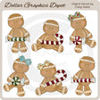 Esta colección incluye tres hombres de pan de jengibre navideños y tres damas de pan de jengibre navideños, con bastones de caramelo y caramelos de menta. Este conjunto contiene 6 gráficos.