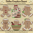Esta colección única solo está disponible en Digital Craft Supplies. Este juego incluye tres hombres de pan de jengibre y una dama de jengibre, con adornos de glaseado blanco, una pajarita, un bonito lazo, botones de corazón, botones de caramelo y botones tradicionales, en rojo, amarillo y verde, y una galleta navideña en forma de estrella, un rojo y tazón de rayas verdes, con un hombre de jengibre, arándanos y ramas de canela, y una señora de pan de jengibre con un bonito lazo rojo, sosteniendo un bastón de caramelo y un cartel navideño que dice "Recién horneado". Este conjunto exclusivo contiene 6 gráficos.