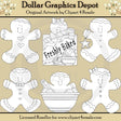 Esta colección única solo está disponible en Digital Craft Supplies. Este juego incluye tres hombres de jengibre y una dama de jengibre, con adornos de glaseado, una pajarita, un bonito lazo, botones de corazón, botones de caramelo y botones redondos tradicionales, una galleta navideña en forma de estrella, un cuenco a rayas, con un hombre de jengibre, arándanos y palitos de canela y una dama de pan de jengibre con un bonito lazo, sosteniendo un bastón de caramelo y un cartel navideño que dice "Recién horneado". Este exclusivo set contiene 6 sellos digitales.