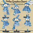 Esta colección incluye seis muñecos de nieve de invierno, que usan sombreros, bufandas, manoplas, calcetines y abrigos de invierno de color azul claro y oscuro con pequeños bastones de caramelo en los bolsillos. Este conjunto contiene 6 gráficos.