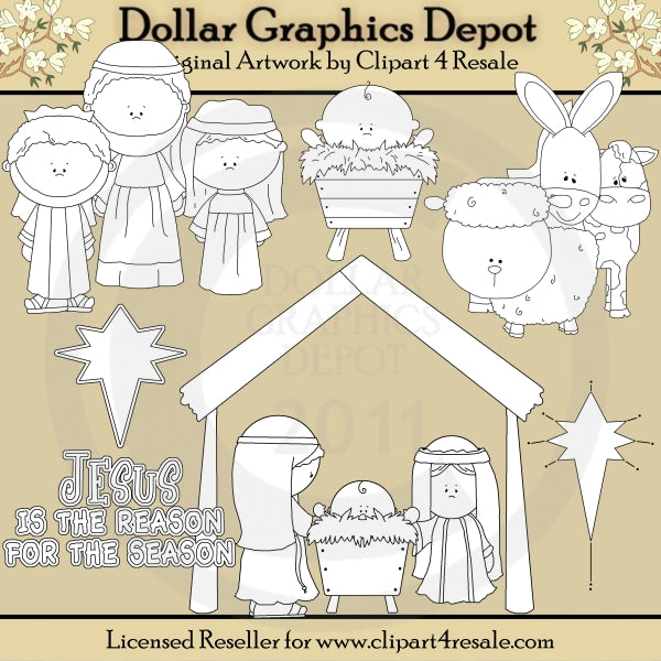 Esta colección única solo está disponible en Digital Craft Supplies. Este conjunto incluye un hermoso belén con José, María y el niño Jesús en un establo, tres reyes magos, una oveja, un burro y una vaca, el niño Jesús en un pesebre, la estrella de Belén y un "Jesús es la razón de Gráfico de arte de palabras "La temporada". Este exclusivo set contiene 6 sellos digitales.