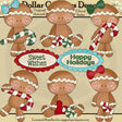 Esta colección incluye tres hombres de pan de jengibre navideños y tres damas de pan de jengibre navideños, bastones de caramelo, caramelos de menta, un corazón rojo y carteles navideños festoneados con las palabras "Dulces deseos" y "Felices fiestas". Este conjunto contiene 8 gráficos.