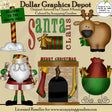 Esta colección incluye a Papá Noel, con su lista de traviesos o amables, una chimenea de ladrillo, con medias colgadas y una palabra artística "Feliz Navidad", el trineo de Papá Noel, con un saco lleno de juguetes y bonitos regalos de Navidad envueltos, un reno, con un bonito lazo. y cascabeles, un letrero invernal que dice "Bienvenido al Polo Norte". y un gráfico de palabra actual "Santa Claus". Los colores incluyen: rojo, verde, blanco, dorado, marrón y negro. Este conjunto contiene 6 gráficos.