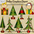 Esta colección incluye una niña con un bonito lazo para el pelo, un niño con un gorro de duende, regalos de Navidad envueltos con bonitos lazos, extravagantes árboles de Navidad con estrellas en la parte superior, adornos navideños, bastones de caramelo, hojas de acebo, una bonita cinta, un lindo un pequeño pingüino, una escalera con una caja de adornos navideños encima y lindos duendes vestidos con trajes de elfo. Todos los colores están en rojo, verde, dorado, negro y blanco. Este conjunto contiene 8 gráficos.