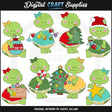Esta colección única solo está disponible en Digital Craft Supplies. Este juego incluye bonitas tortugas navideñas con adornos navideños, hilos de luces navideñas, árboles de Navidad decorados, una caja llena de adornos navideños, un bastón de caramelo y una estrella dorada. Este conjunto exclusivo contiene 8 gráficos.