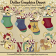 Esta colección incluye siete conejitos navideños andrajosos, algunos con bonitos lazos para el cabello, cuatro medias navideñas coloridas, llenas de ramas de pino, caramelos de menta, bastones de caramelo y galletas de muñeco de nieve, un lindo hombrecito de jengibre y una palabra artística "Noel". Este conjunto contiene 7 gráficos.