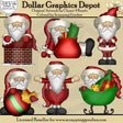 Esta colección incluye seis Papá Noel, vestidos con trajes y gorros de Papá Noel rojos y blancos, una chimenea con nieve, un bonito adorno navideño rojo y verde, sacos llenos de juguetes navideños, muchos regalos navideños bonitos envueltos y un trineo verde. Este conjunto contiene 6 gráficos.