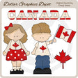 Esta colección incluye un niño canadiense, una niña canadiense, una bandera canadiense, una hoja de arce y un gráfico con la palabra "Canadá". Este conjunto contiene 5 gráficos.