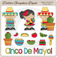 Esta colección incluye tres adorables niños del "Cinco De Mayo", sombreros, maracas, plantas de cactus, tazones de tortillas, un tazón de salsa, un chile, un taco, un tomate, aguacates, un frasco de salsa y un "Cinco De Mayo". Gráfico de arte de palabras "De Mayo". Este conjunto contiene 13 gráficos.