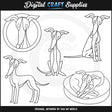 Esta colección incluye cinco pequeños y dulces galgos italianos: uno de pie, dos sentados, uno acostado en una cama para perros y otro con un fondo enmarcado. TENGA EN CUENTA: Este conjunto se coordina con las colecciones "Dash - Italian Greyhound - Clip Art" y "Blitz - Italian Greyhound - Clip Art" . Este conjunto contiene 5 sellos digitales.