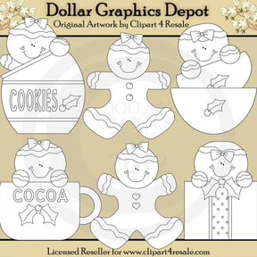 Esta colección incluye seis adorables damas de pan de jengibre, con bonitos lazos, mejillas en forma de corazón y adornos de glaseado, un tarro de galletas, tazones para mezclar, una taza de chocolate y un bonito regalo envuelto con una hoja de baya de acebo. Este conjunto contiene 6 sellos digitales.