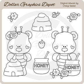 Esta colección incluye adorables ositos abejorros, colmenas, tarros de miel con agitadores de miel, flores bonitas, una fresa y un pequeño abejorro. TENGA EN CUENTA: Este conjunto coordina con la colección "Honey Bear - Clip Art" . Este conjunto contiene 8 sellos digitales.
