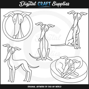 Esta colección incluye cinco pequeños y dulces galgos italianos: uno de pie, dos sentados, uno acostado en una cama para perros y otro con un fondo enmarcado. TENGA EN CUENTA: Este conjunto se coordina con las colecciones "Dash - Italian Greyhound - Clip Art" y "Blitz - Italian Greyhound - Clip Art" . Este conjunto contiene 5 sellos digitales.