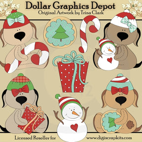 Esta colección incluye adorables cachorros navideños, con coloridos sombreros navideños, bastones de caramelo, regalos navideños envueltos, galletas navideñas escarchadas y lindos muñecos de nieve invernales. TENGA EN CUENTA: Este conjunto coordina con la colección "Yuletide Doggies 1 - Scrap Papers" . Este conjunto contiene 8 gráficos.