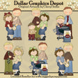 Esta colección incluye seis papás guapos, vestidos con pantalones, camisas de vestir y algunos con corbata, cinco hermosas hijas, vestidas con jeans remangados, blusas de cuadros y lunares y lazos para el cabello a juego, dos lindos hijitos, vestidos con pantalones, monos y camisas de manga larga, parrillas para barbacoa, bolsas de carbón, pinzas para asar y relojes de bolsillo de oro. Este conjunto contiene 6 gráficos.