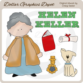 Esta colección incluye a Helen Keller, un libro de lectura, un pergamino, una "Medalla Presidencial de la Libertad", un cachorro y un gráfico de palabras "Helen Keller". Este conjunto contiene 6 gráficos.