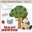 Esta colección incluye a Isaac Newton, sentado bajo un manzano con una manzana y un libro, nubes hinchadas, un pergamino, una manzana, un libro y un gráfico de palabras "Isaac Newton". Este conjunto contiene 6 gráficos.