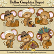 Esta colección incluye adorables ratoncitos de Acción de Gracias con sombreros de peregrino, un tocado de plumas indias, calabazas de otoño, una cornucopia llena de frutas, un lindo pavo, un mosquete, maíz indio y coloridas hojas de otoño. Este conjunto contiene 6 gráficos.
