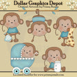 Esta colección incluye cinco adorables monos bebés: uno con una manta de bebé, otro colgado de la rama de un árbol, uno con una jirafa de peluche, uno sentado en un cochecito de bebé y otro con un biberón. Este conjunto contiene 5 gráficos.