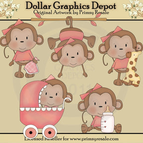 Aquí hay algunos ejemplos de lo que puedes crear usando estos gráficos de "Baby Girl Monkeys":