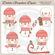 Esta colección incluye adorables niñas de nieve, gorros de invierno, bufandas de invierno, manoplas, una cadena de luces navideñas, un bastón de caramelo, un hombre de jengibre, un trineo y una ranita con un gorro de invierno. Este conjunto contiene 5 gráficos.