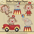 Esta colección incluye un mono de circo disfrazado de payaso, un mono de circo columpiándose en un columpio, un mono de circo disfrazado de payaso y conduciendo un coche de circo, un elefante parado sobre un accesorio de circo mientras hace equilibrio con una pelota y una foca parada sobre un utilería de circo mientras equilibra una pelota. Este conjunto contiene 5 gráficos.