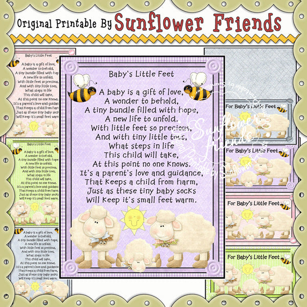 Coloque un par de calcetines pequeños para bebé junto con el poema Pies del bebé en una bolsa para manualidades de 3x4.