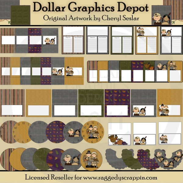 Esta ENORME colección incluye muchos imprimibles fantásticos con niñas indias y peregrinas, un pavo con una calabaza, una manzana roja y una berenjena, un niño y una niña peregrinos de pie en una mesa de Acción de Gracias, y arte con palabras de Acción de Gracias con rayas, estrellas y un colorido otoño. fondos de hojas. Este juego incluye los siguientes imprimibles: cuatro bloques de vidrio, cuatro envoltorios de palomitas de maíz, cinco hojas de tareas pendientes, siete envoltorios de barras de chocolate, ocho soportes para notas Post-It, siete cubiertas para chequeras, seis esferas de reloj, tres adornos para bolsas y siete cubiertas para Jiffy Pop. y cuatro cubiertas para pantallas de lámpara. BONIFICACIÓN: Este conjunto también incluye las siguientes plantillas en blanco: una plantilla para adorno de bolso, una plantilla para envoltorio de barra de chocolate, una plantilla de bloque, una plantilla para talonario de cheques, una plantilla de esfera de reloj, una plantilla de Jiffy Pop, una plantilla para pantalla de lámpara, una plantilla para envoltorio de palomitas de maíz. una plantilla de soporte para notas Post-It y una plantilla de hoja de tareas pendientes (no se muestran plantillas en blanco). TENGA EN CUENTA: Este conjunto coordina con "Be Thankful - Graphic Collection". Este conjunto contiene 65 imprimibles (incluidas plantillas en blanco).