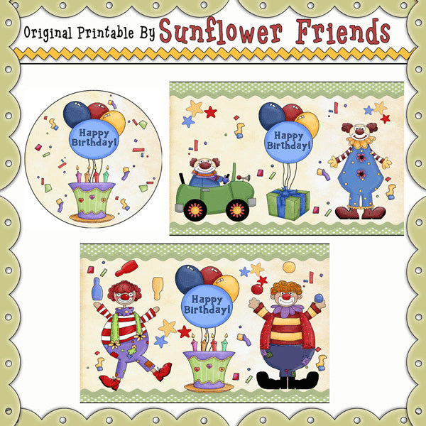 ~Payasos de cumpleaños~ Etiqueta de lata de pintura de un cuarto de galón (07)