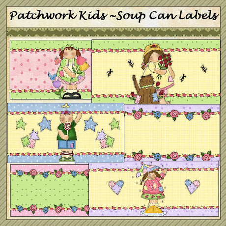 Precio normal $1.38 USDPrecio unitario /Agotado~Patchwork Kids~ Etiquetas de latas de sopa...(12)
