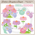 Esta colección incluye adorables pajaritos primaverales, parches de hierba, flores bonitas, una maceta llena de flores primaverales y un gráfico artístico con palabras "Birds Of A Feather". Este conjunto contiene 8 gráficos.