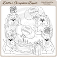 Esta colección incluye adorables cachorritos con gorros de fiesta, bonitos lazos para el cabello, globos de cumpleaños, un regalo de cumpleaños envuelto y un pastel de cumpleaños glaseado con velas. TENGA EN CUENTA: Este conjunto coordina con la colección "Birthday Doggies - Clip Art" . Este conjunto contiene 4 sellos digitales.