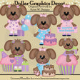 Esta colección única solo está disponible en Digital Craft Supplies. Este juego incluye seis adorables cachorritos de cumpleañera, con bonitos vestidos estampados, lazos rosas para el cabello, pinzas para el cabello florales, pastelitos glaseados, regalos de cumpleaños envueltos con lindos lazos, un sombrero de fiesta, globos de cumpleaños, pasteles de cumpleaños en capas con velas y una fiesta. cartel que dice "Feliz cumpleaños". Este conjunto exclusivo contiene 6 gráficos.
