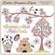 Esta colección incluye un hermoso árbol de cerezo en flor, una rama de cerezo en flor, flores de cerezo, una mariposa, cerezas, una colmena con flores de cerezo y un abejorro, un cachorro manchado sentado en un cubo de cerezas y uno "Las flores del corazón". Ningún viento puede tocar." TENGA EN CUENTA: Este conjunto coordina con la colección "Blossoms Of The Heart - Scrap Papers" . Este conjunto contiene 9 gráficos.