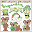 Esta colección incluye adorables osos del Día de San Patricio, una flor de trébol, tréboles, un bonito lazo verde, un sombrero de duende, un arcoíris con nubes hinchadas y un bonito lazo verde, un sombrero de duende con flores, un trébol y un abejorro. una planta con bonitas margaritas, tréboles y abejorros, un borde de trébol y un gráfico con la palabra "May The Road Rise Up To Meet You". Este conjunto contiene 8 gráficos.