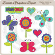 Esta colección incluye coloridas mariposas, flores, corazones y un gráfico coordinado con la palabra "Bring Cheer To Your World". TENGA EN CUENTA: Este conjunto coordina con las colecciones "Bouncy Butterflies - Scrap Papers" y "Bouncy Butterflies - Digital Stamps". Este conjunto contiene 9 gráficos.