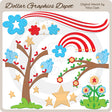 Esta colección incluye un hermoso árbol patriótico, parches de césped, bonitas flores patrióticas, corazones, estrellas, pajaritos azules, una rama de árbol, arco iris rojo, blanco y azul, y nubes patrióticas hinchadas. Este conjunto contiene 7 gráficos.