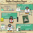 Esta colección incluye tres ranas profesoras de química, tres estudiantes de laboratorio de pingüinos, batas blancas de laboratorio de química, gafas de seguridad, libros de química con mini tablas periódicas y elementos, pizarras verdes con información sobre las clases de química y reglas de seguridad, mesas de laboratorio de metal, una estación de lavado de ojos de emergencia, botes de basura negros y amarillos, vasos de vidrio, tubos de ensayo y frascos con líquidos coloridos. Este conjunto contiene 6 gráficos.