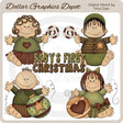 Esta colección incluye adorables bebés, niños y niñas navideños, con bastones de caramelo y adornos navideños, y un gráfico con palabras "La primera Navidad del bebé". TENGA EN CUENTA: Este conjunto coordina con las colecciones "Bebés de Navidad 2 - Clip Art", "Bebés de Navidad 1 - Tarjetas" y "Bebés de Navidad 2 - Tarjetas". Este conjunto contiene 5 gráficos.
