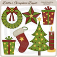 Esta colección incluye siete detalles navideños, diseñados con una apariencia de fieltro texturizado: regalos navideños con bonitos lazos, una corona, una estrella, un calcetín navideño, una vela y un árbol de Navidad decorado. Este conjunto contiene 7 gráficos.