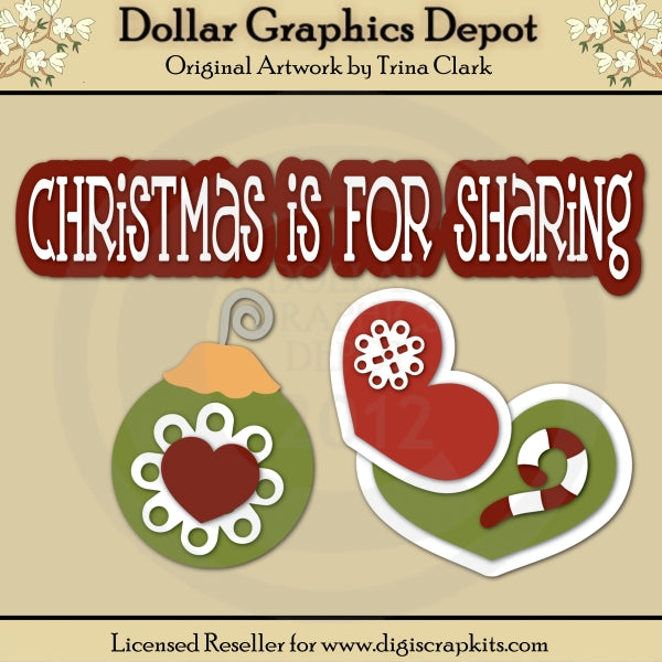 Esta colección incluye archivos de corte que se pueden usar para crear este adorable proyecto de manualidades de amigos navideños (que se muestra "terminado" en la vista previa): un adorno navideño, corazones, copos de nieve, un bastón de caramelo y una palabra artística "La Navidad es para compartir".