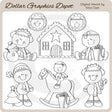 Esta colección incluye adorables jengibres navideños con bufandas, sombreros, lazos y orejeras, dos galletas de jengibre escarchadas, una casa de jengibre decorada, regalos de Navidad envueltos, un lindo muñeco de nieve, un pequeño árbol de Navidad con una estrella dorada en la parte superior, un bastón de caramelo y un caballito de madera. Este conjunto contiene 8 sellos digitales.